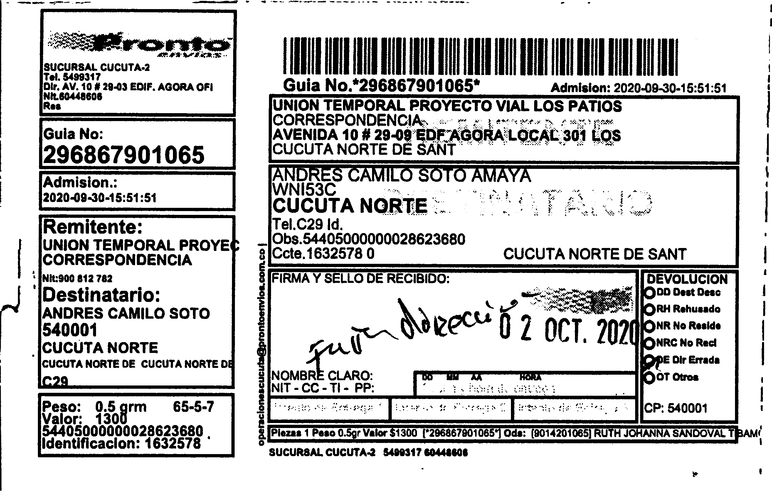Apache/2.4.65 (Debian) Server at prontoenvios.public.fivesoft.com.co Port 80