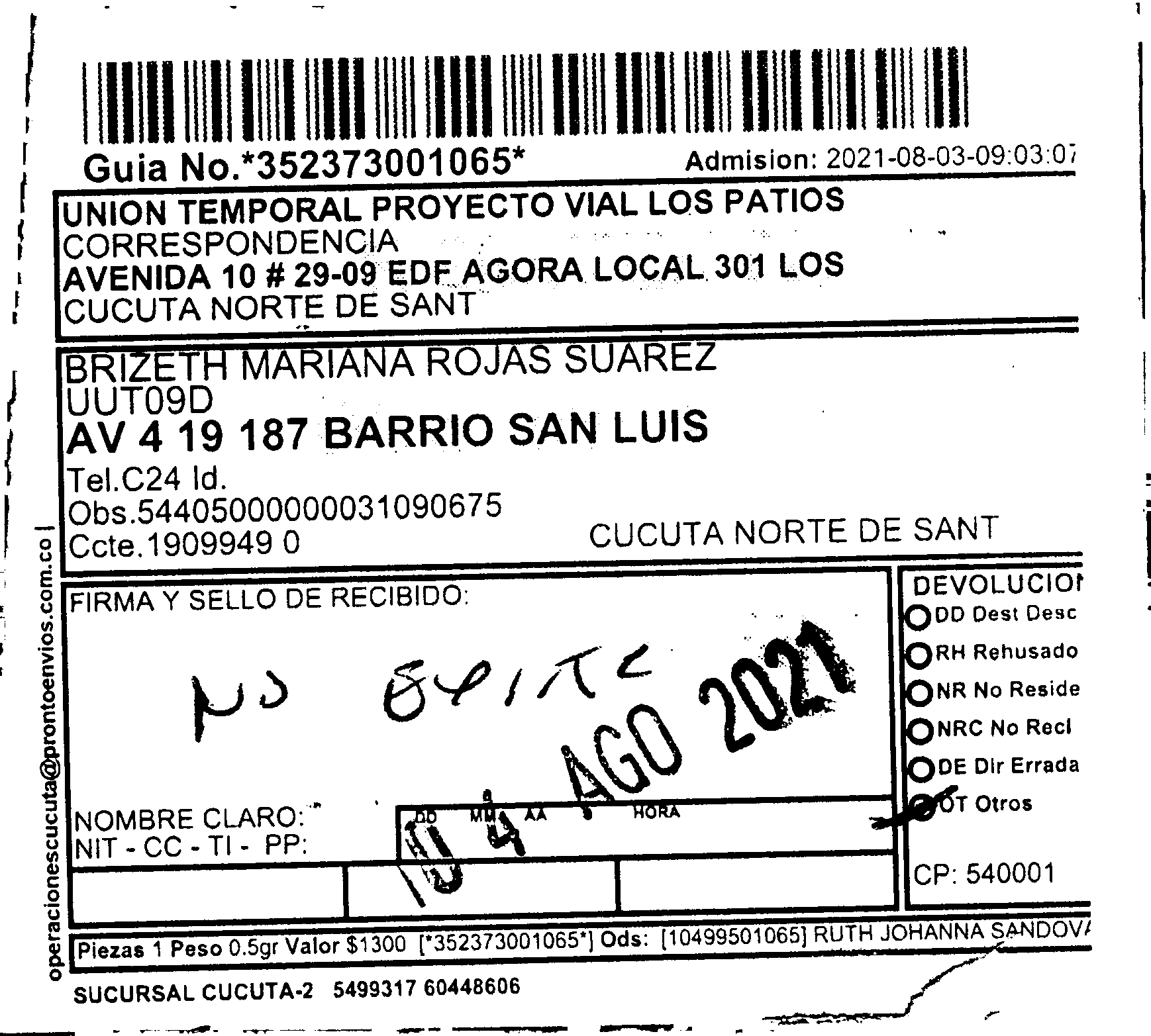 Apache/2.4.65 (Debian) Server at prontoenvios.public.fivesoft.com.co Port 80