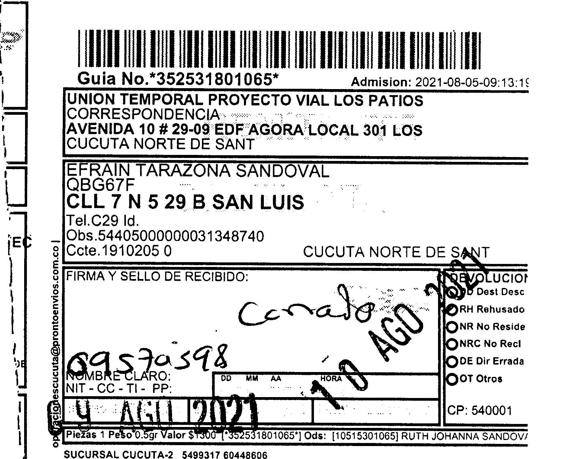 Apache/2.4.65 (Debian) Server at prontoenvios.public.fivesoft.com.co Port 80