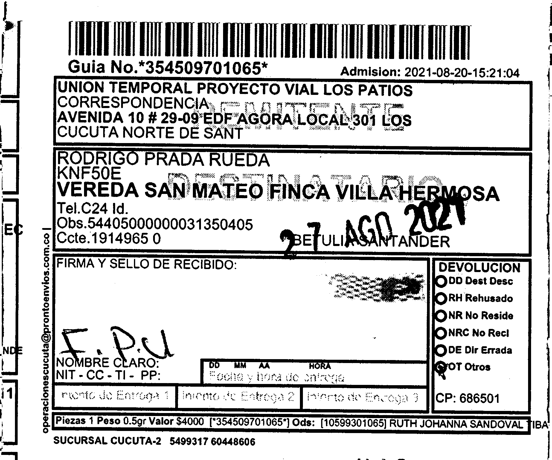 Apache/2.4.65 (Debian) Server at prontoenvios.public.fivesoft.com.co Port 80