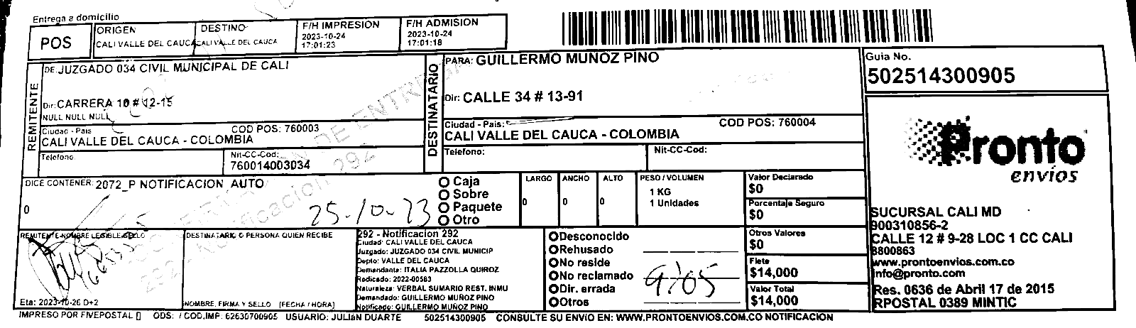 Apache/2.4.65 (Debian) Server at prontoenvios.public.fivesoft.com.co Port 80